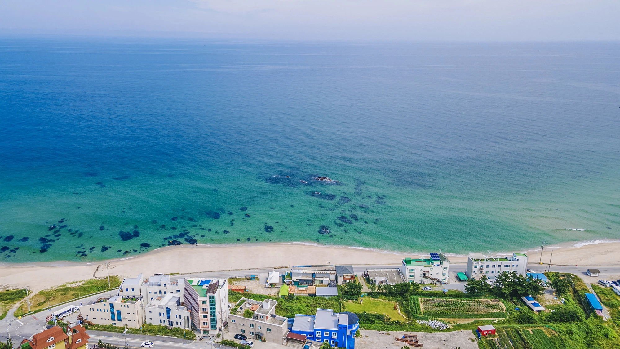 숙소 바로 앞에 하평해수욕장이 위치하고 있습니다.